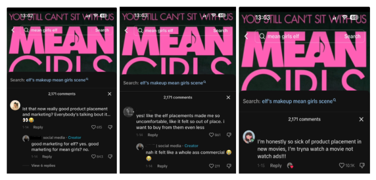 But from a marketing standpoint? e.l.f.’s move exudes big brain energy. By weaving their makeup seamlessly into the movie, they’ve snagged attention from a massive audience, especially some of us who live and breathe Mean Girls. It’s like they’re saying, “Hey, we’re part of your world now, too,” by leveraging a beloved cultural phenomenon like “Mean Girls” for extensive product placement aligns with e.l.f.’s goal of maximizing brand exposure and connecting with consumers in innovative ways.